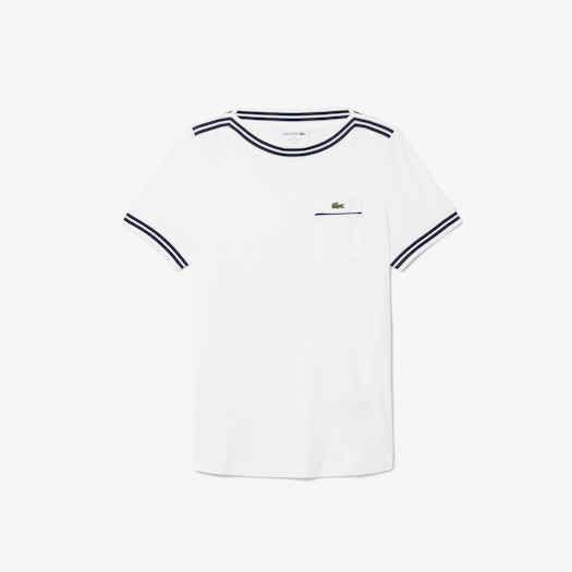 Kaos lengan panjang wanita dengan motif garis-garis dan bordir logo ikonik Lacoste, tampil trendy dan stylish dengan bahan yang sangat nyaman untuk beraktivitas sehari-hari.