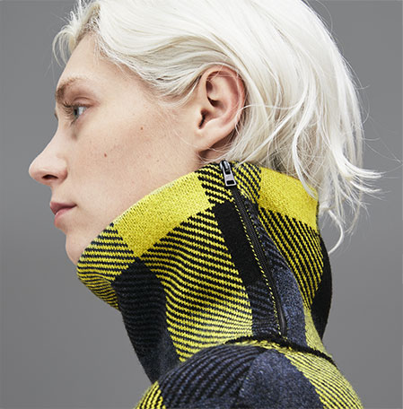 Un abito in maglia che fa colpo con i grandi scacchi jacquard, le maniche larghe e il collo con zip.