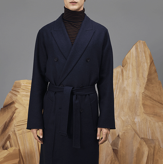 Un lungo cappotto in panno di lana accoppiato. Perfetto con un dolcevita in morbido jersey di lana.